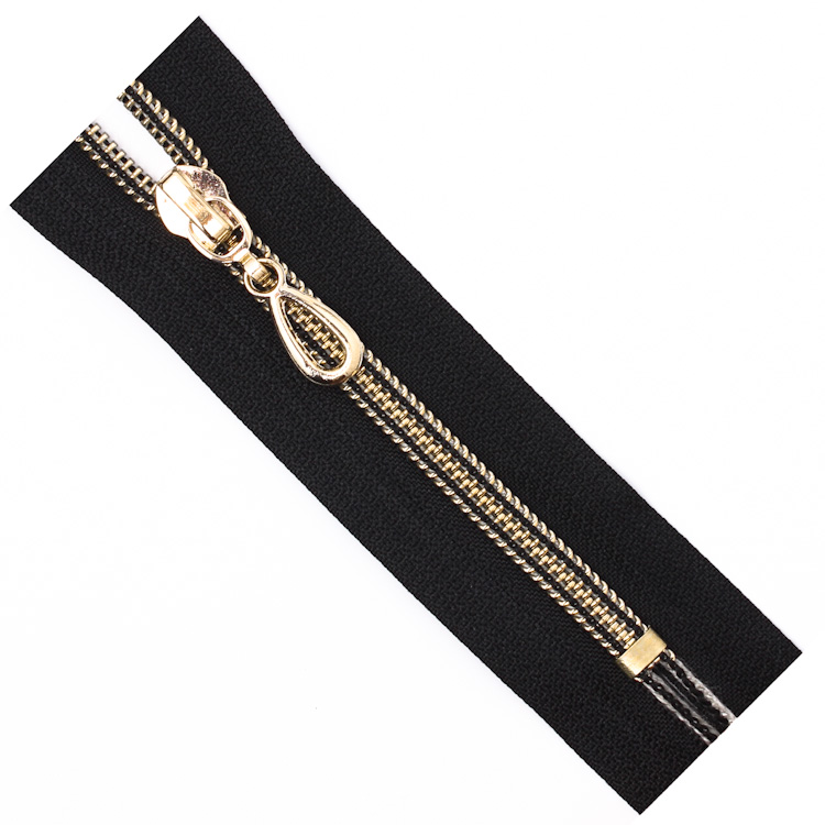 Молния спиральная декоративная неразъемная (пуллер капля) 10 см Т5 русское золото/черный (20 шт)