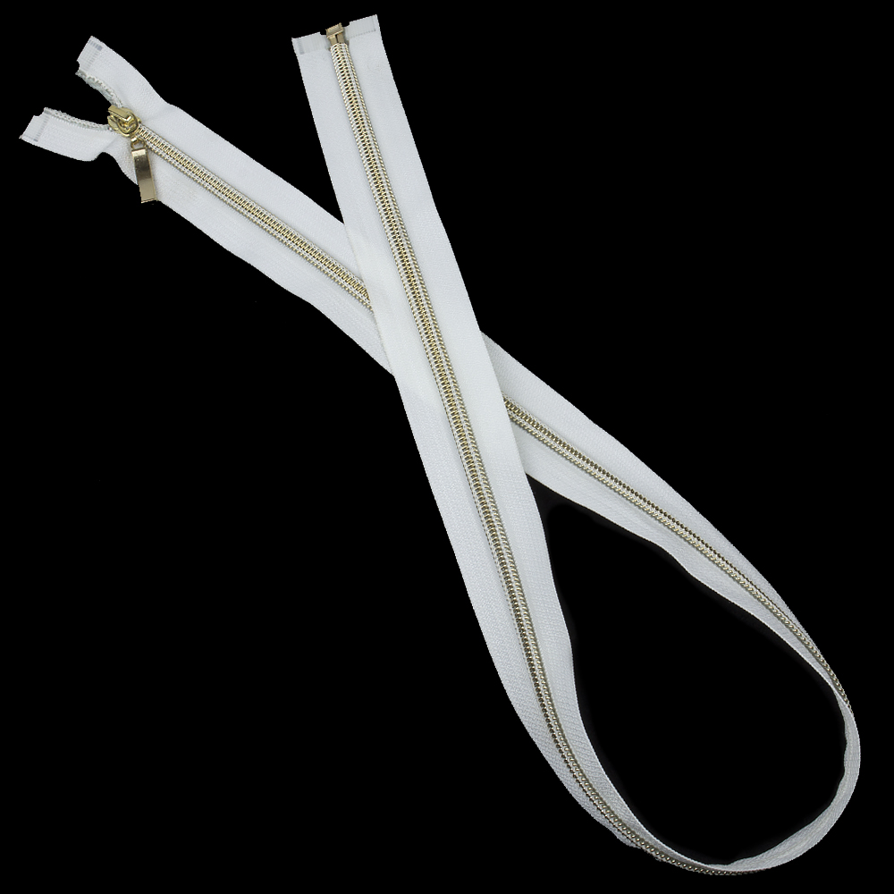 Молния спиральная декоративная разъемная 1-замок (пуллер прямой) 75 см Т5 русское золото/белый