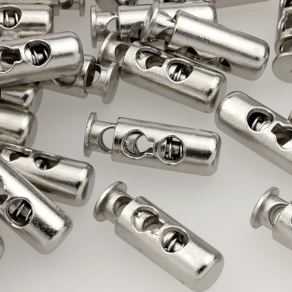 Фиксатор пластиковый, с двумя отверстиями. Используется для фиксации шнуров, пружинный механизм.У нас в наличии Фиксатор пластиковый двойной 3352 никель (100 шт), артикул 00004739 в отличном качестве.