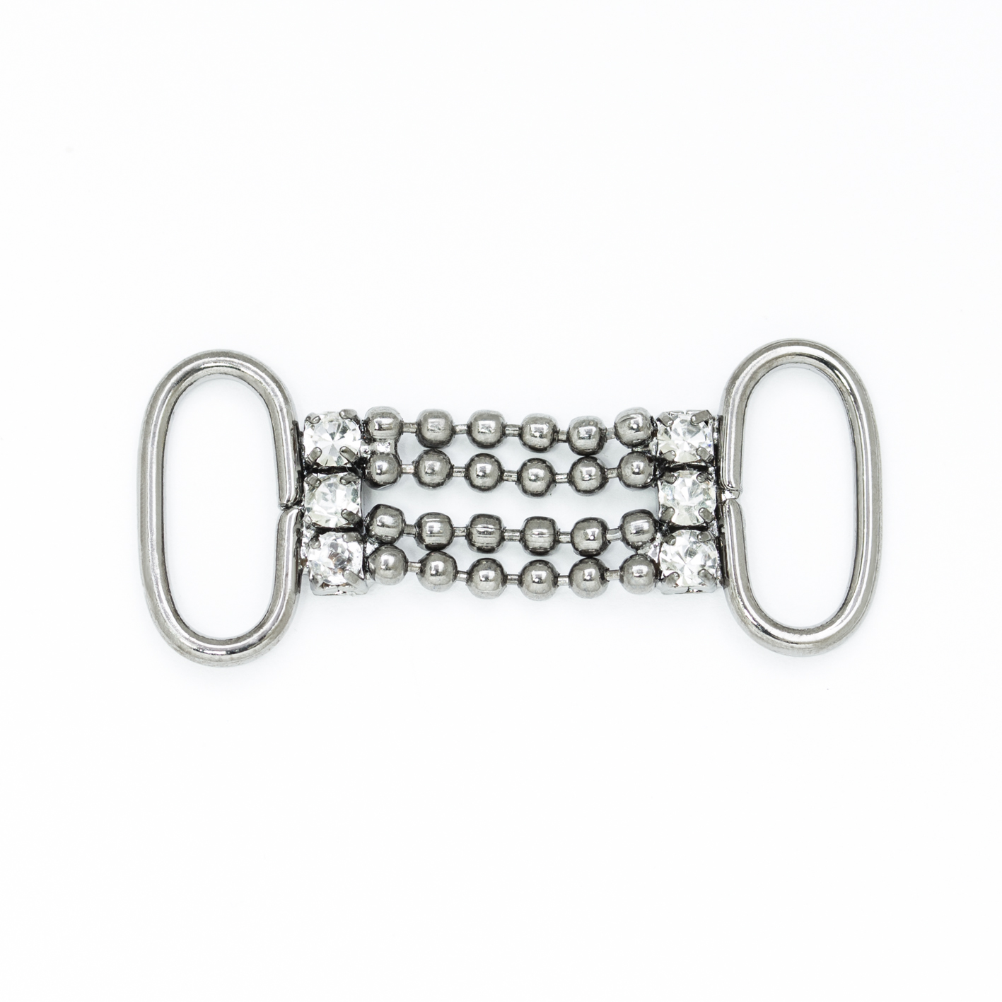 Может использоваться как декоративный элемент на женскую группу одежды и в кожгалантерее.У нас в наличии Пряжка со стразами 0660 темный никель, артикул 00014367 в отличном качестве.