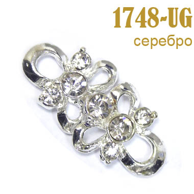 Пряжка-застежка состоит из двух частей. Для прикрепления к изделию, на обратой стороне имеются ушки. Может использоваться как функциональный и декоративный элемент на женскую группу одежды.У нас в наличии Застежка со стразами 1748-UG серебро, артикул 00021498 в отличном качестве.