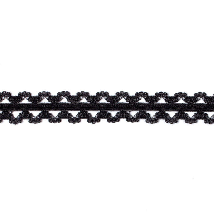 Резинка кружево. состав: 50% латекс, 50% полиамид. Резинка кружево незаменима при изготовлении нижнего белья. Удачно этот вид отделки применяется на женской одежде (топы, юбки), на трикотажных и чулочно-носочных изделиях.У нас в наличии Резинка кружево 1043S черный (132 м), артикул 00018174 в отличном качестве.