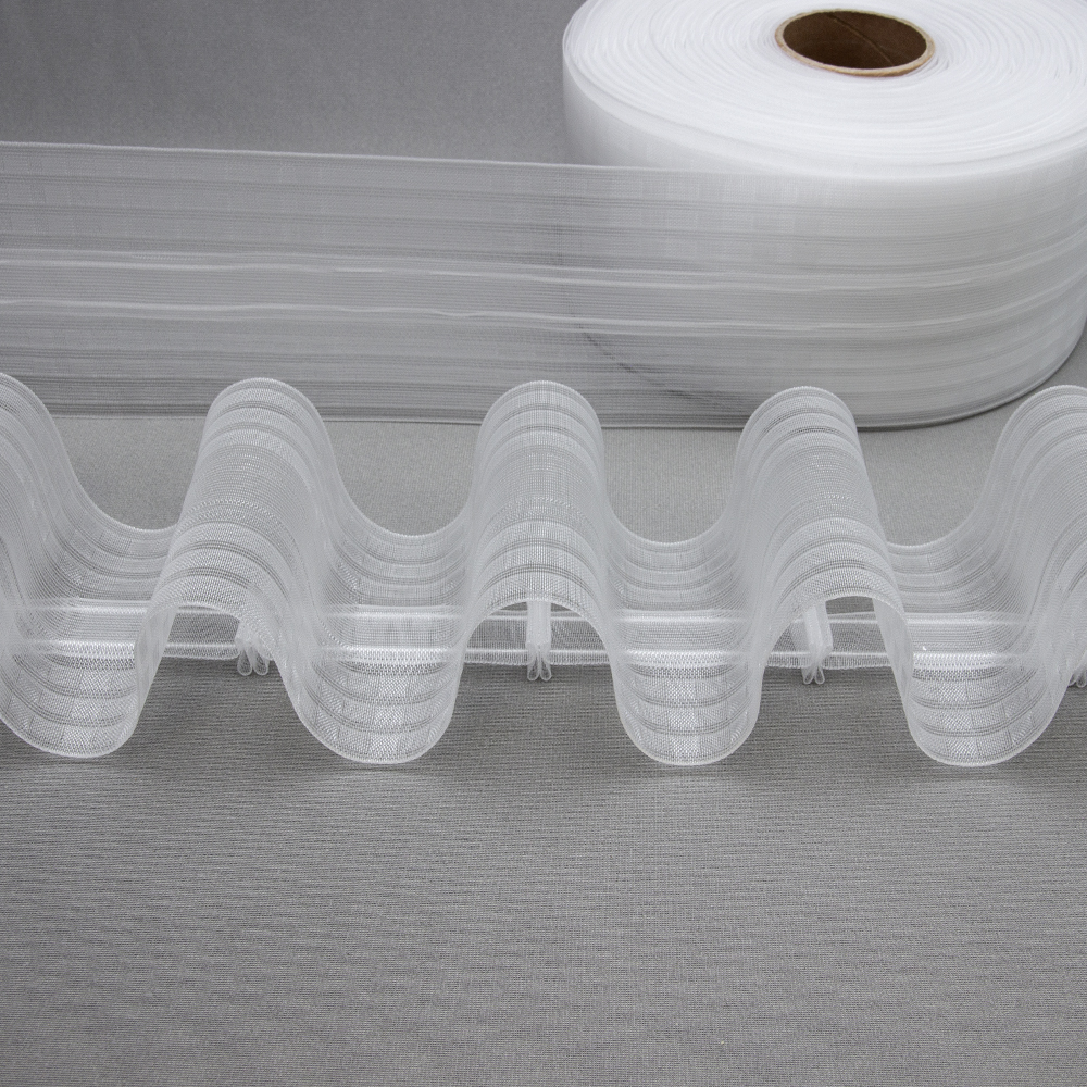 - Мягкая, пластичная, послушная лента — хорошо держит форму складки, легко стягивается.